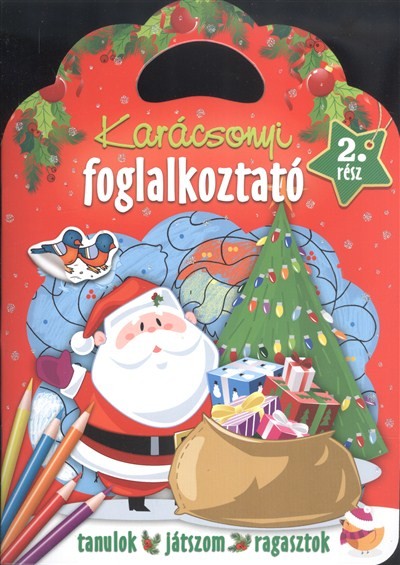 A legújabb kétrészes karácsonyi foglalkoztatónk feladatait az ünnepi témakörből merítettük az óvodáskorú gyerekek számára. Vannak közöttük labirintusok, párosítások, különbségek keresése, nyomvonalrajzolás, színezés, egyszerű logikai feladatok; és természetesen nem hiányozhatnak a könyvből a közkedvelt matricák sem. E kiadványunk hasznos ajándék, és nagyszerű időtöltés minden óvodás gyermeknek.