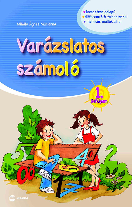 A Varázslatos számoló 1. évfolyam című gyakorló számtani alapokra helyezve fejleszti a biztonságos szám- és műveletfogalomra épülő számolási készségeket. A kiadvány célja a matematikai készségek, képességek gyakoroltatása, a logikai gondolkodás fejlesztése, illetve a megszerzett matematikai tudás rögzítése, elmélyítése. Az összegyűjtött matricákból egy a matematikához kapcsolódó izgalmas puzzle-t állíthatnak össze a gyerekek, amely a tantárgy megszerettetését is elősegíti.