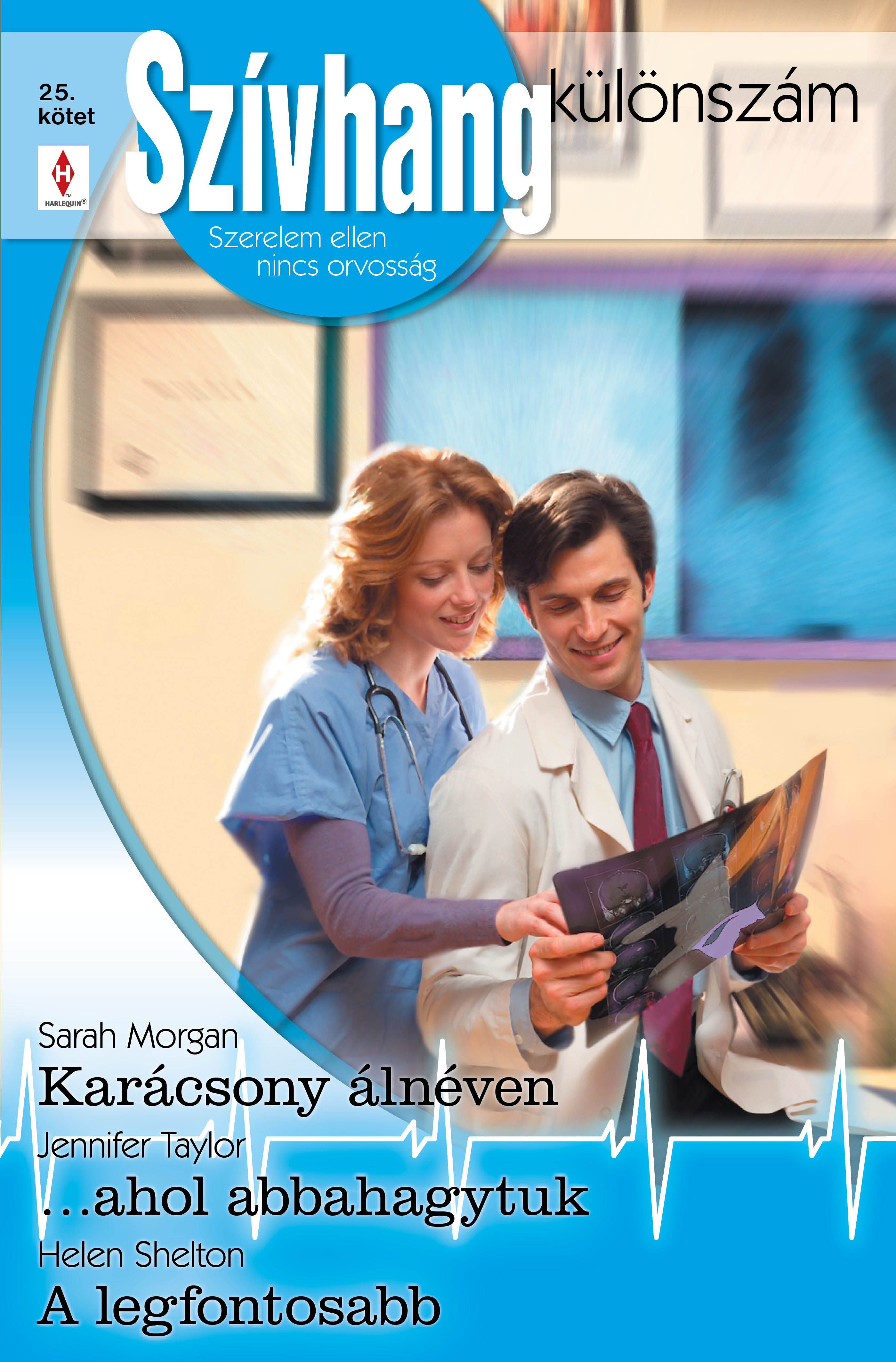 Sarah Morgan: Karácsony álnéven A fiatal szülésznő, Suzannah a hetedik mennyországban érzi magát. Beleszeretett Carlo Santini doktorba, és a férfi viszontszereti. Együtt ünneplik a lány kis lakásában a karácsonyt a közösen feldíszített hatalmas fa alatt. Carlo Zan minden kívánságát teljesíti, de a legnagyobb ajándék mégis a szerelme. Egészen addig, amíg ki nem derül, mit titkol, és miért kellett elmenekülnie Olaszországból... Jennifer Taylor: …ahol abbahagytuk Afrikába ment dolgozni Sean, a vállalkozó kedvű mentőorvos, és szerette volna, ha ápolónő kedvese is elkíséri. Claire azonban gyereket várt tőle, s mivel nem akarta, hogy a férfi lemondjon az álmairól, és kötelességtudatból vele maradjon, eltitkolta előle a hírt. Csak nyolc évvel később látják egymást újra, amikor Sean helyettes orvosként megjelenik a nő munkahelyén. Claire nem tudja elképzelni, hogy kapcsolatukat folytassák… Helen Shelton: A legfontosabb Amikor Annabel Stuart kardiológusnő és volt férje, a nagy tekintélyű Luke Geddes professzor hat év után újra találkozik egymással, a férfi éppolyan szemtelenül vonzó, mint régen. Ám a nő nem felejtette el, hogy a férje egykor elhagyta, mert a munkája fontosabb volt számára. Luke most a főnöke lett, és újra hevesen udvarolni kezd neki, de Annabel úgy látja, hogy alapvetően nem változott meg…