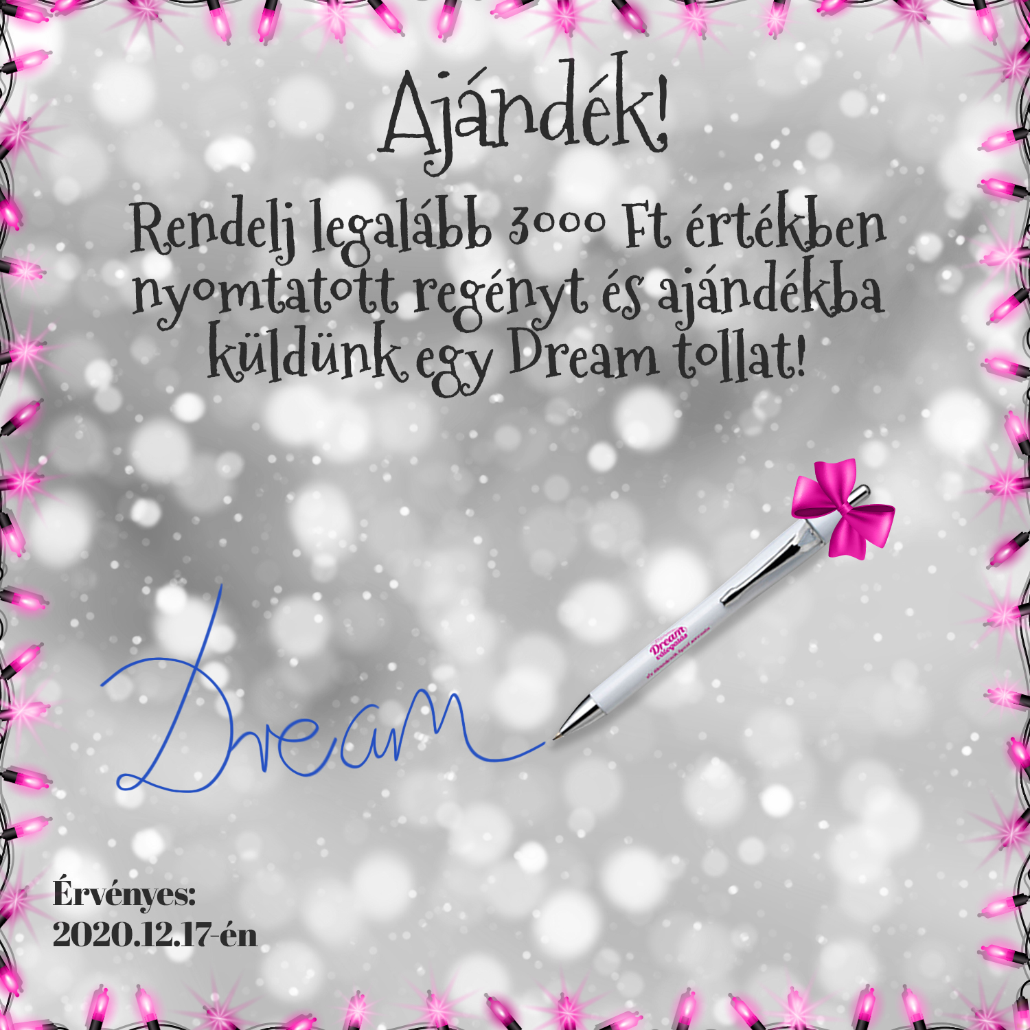 Rendelj ma, 12.17-én legalább 3000 Ft értékben nyomtatott könyvet az olvas.hu oldalán, és ajándékba küldünk egy Dream tollat!